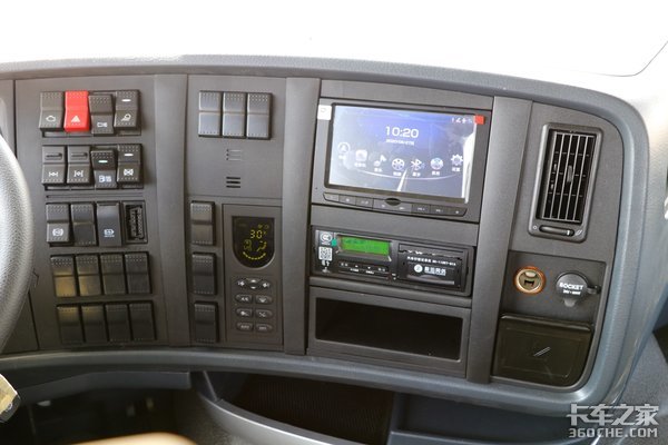 而豪沃TH7的中控台,就像一杯香浓的咖啡,更具有情调。中控台设计十分美观,最边上是驻车制动手柄,液晶显示屏比较突出,非常吸引目光。支持蓝牙、车载导航、车载WiFi以及车队管理系统等功能,既可以提升驾驶室的科技感,又可以丰富行车乐趣。