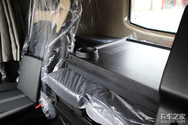 豪沃TH7通过调节副驾,下卧铺宽度可拓至1米,休息更舒服。将卧铺收拾起来,驾驶室中间位置还可以布置成休闲桌,可以选装车载冰箱。下卧铺处配有车窗升降控制开关以及USB充电口,旁边更是有阅读灯以及水杯托架和储物盒,让休闲时光变得更加多姿多彩。
