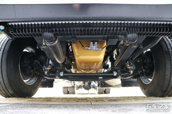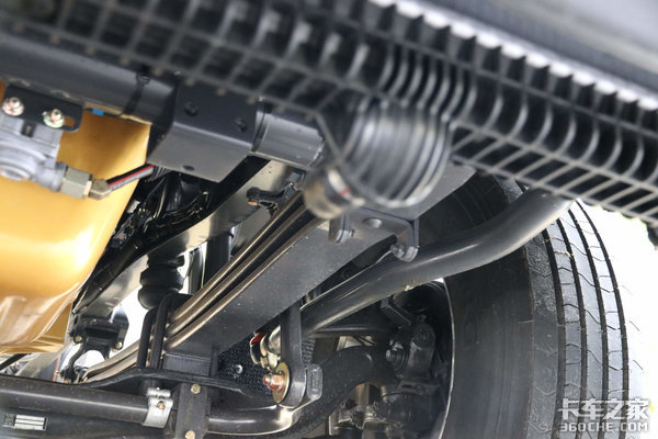 这款车的前桥采用的是153(加强)前桥,前桥搭配3片板簧,并且采用的是康迈轮端,保养周期达到了50万公里,除此之外,发动机和变速箱也都采用的是长换油的技术,可以直接减少保养次数和保养费用,而且也可以减少因为保养而带来的停车时间,提高出勤率。