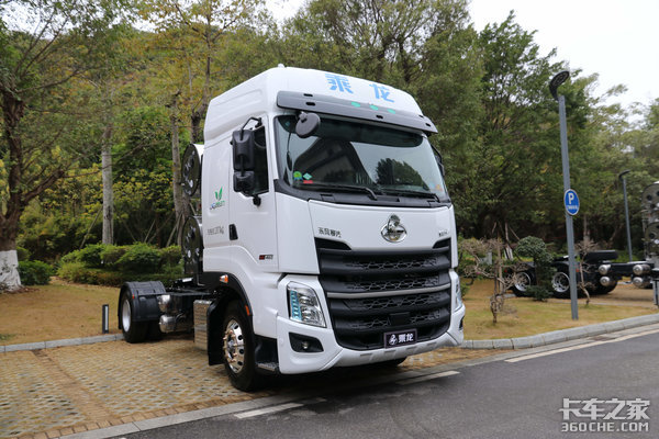 这款乘龙H7 LNG牵引车的后桥采用了FS160后桥,速比为3.083,玉柴460马力燃气机+法士特变速箱+小速比后桥、动力充沛、燃油经济性大幅提升,据了解,这款车的综合百公里气耗可以低至24L。