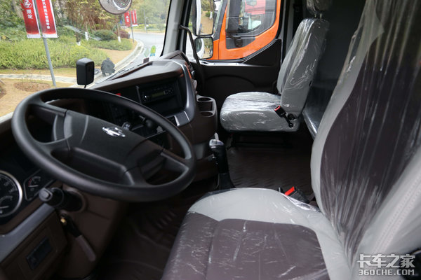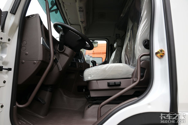 进入座舱,近乎平地板驾驶室的设计使得车内驾乘空间和活动空间也更加宽敞。驾驶室采用四点气囊悬浮设计,行车过程中可大幅过滤掉从地面传来的颠簸感,保证驾乘舒适性。