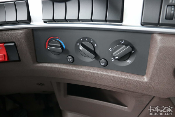 空调采用了旋钮式的设计,操作更加便捷,空调右侧配备了点烟器,同时我们可以看到在中控区域还预留了许多控制按钮位置,为卡友后续增加配置提供了便利。