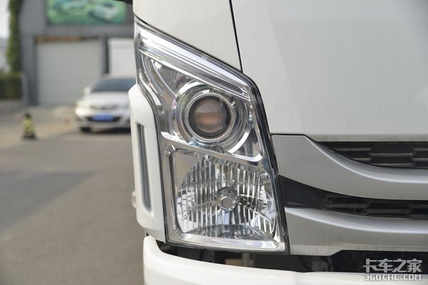 直立式组合大灯集成设计了远近光灯、转向灯以及LED日行灯,近光灯带透镜。遇到下雨天时,迎面而来的泥水可能会飞溅到车灯上,影响车灯的照明效果,因此C300轻卡在灯组外侧增加了导流槽,可以在行驶过程中保持灯组的干净。