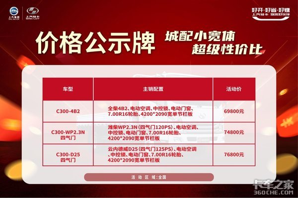 最重要的是性价比高,标配版C300降价不降质,不到7万就能入手,计划购车的卡友可以去经销商处实际看看车。年末钜惠千万别错过,毕竟省到就是赚到的。(文/王雪洁 图/卡车之家)