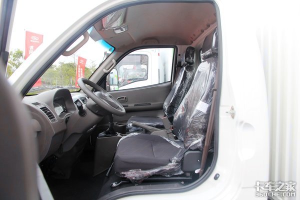 驾驶室宽度为1740mm,与窄体轻卡接近,空间感得到保证。座椅布局和同类型车型略有不同,新瑞迪采用双座椅+中间储物区设计,应该表扬的是,座椅坐垫和靠背的侧翼填充物饱满,舒适性不低。