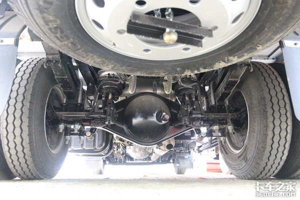 车桥方面,整车采用2.0t的鼓式前桥和3.5t的鼓式后桥,后桥速比为4.875。悬架方面,整车采用前3后5+3H的片簧设计,承载能力非常不错。