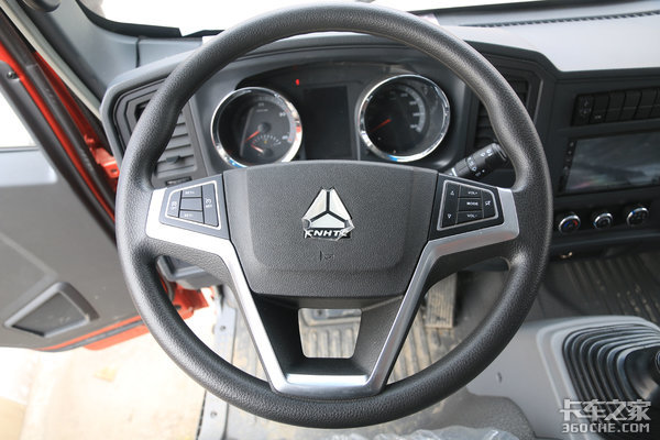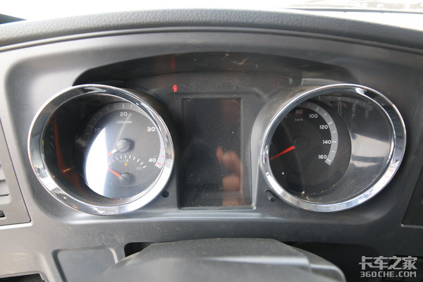 仪表盘采用常见的机械指针+液晶屏的组合,左侧是发动机转速表和油量表,右侧是车辆时速表。表盘采用轻卡产品中少见的炮筒式设计,看起来深邃而动感,它能有效避免反光,使仪表内数据更加清晰易读。