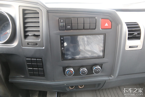 中控区域主要分布有大灯高度调节、电气喇叭开关等控制按键和8寸中控大屏、电调空调等,中控屏支持收音机、音乐、视频、蓝牙等功能。如果觉得这些还不够,驾驶员还可根据需要选装MP5多媒体系统,解锁更多功能。