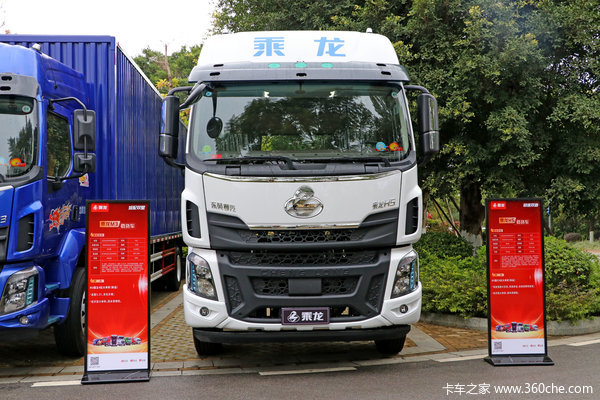 这款乘龙H5实拍车在整车外观方面依然是保持了一个家族化的设计风格,纯白色的车身显的整车看上去非常的挺拔帅气,同时我们也能从它的身上看到一些乘龙3.0车型的设计元素。