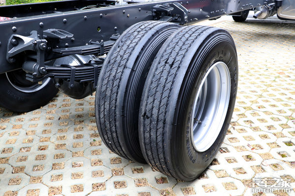 实拍车配备的是275/80R22.5型号轮胎,这条轮胎采用了四条直线型花纹沟设计,使得它的直线行驶性能和防湿滑性能非常优异,很适合在铺装路面行驶。