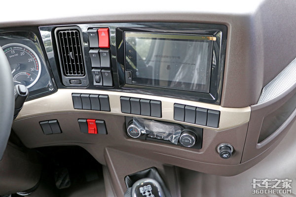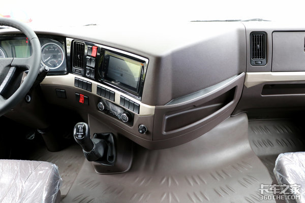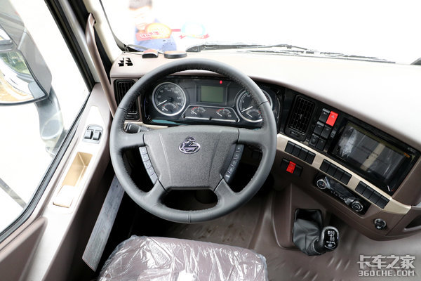 进入到车内,我们可以看到实拍车的内饰设计也同外观一样,依然是采用了家族化的设计风格。不得不说,乘龙H系家族的外观、内饰设计真的是非常耐看,也是非常的受卡友们的喜爱。