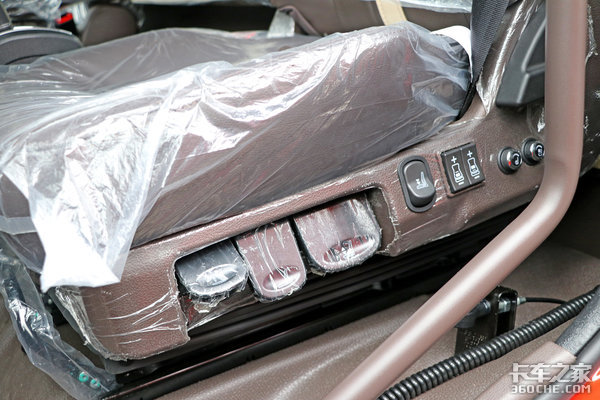打开车门映入眼帘的就是这款高配气囊座椅,座椅表面采用皮质包裹,柔软性和支撑性都不错。功能方面除了常见的俯仰度调节、一键放气外,还新增了二级腰托和座椅通风加热功能,有了这些功能,对我们司机的乘坐舒适度会有极大的提升帮助。