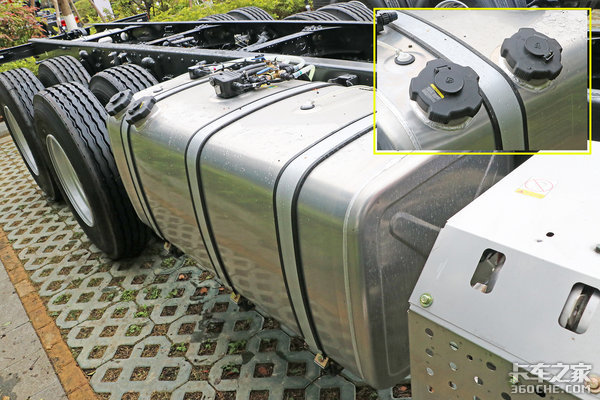 既然定位于长途高效物流运输,油箱提供的续航里程自然也不能低。实拍车配备了总容积800升的双腔铝合金油箱,可为车辆提供不少于2000公里的续航里程。并且小油箱可以加注低标号汽油,在寒冷地区起步更容易,同时也能降低车辆的使用成本。