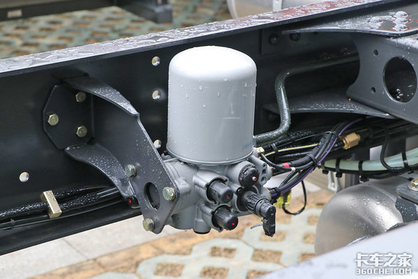 另外为了保证各个气路接口的密封性,实拍车上关键性的气路阀门都采用了国际大厂克诺尔的配件,另外车辆的空气处理单元使用的同样是克诺尔部件,整体可靠性值得信赖。