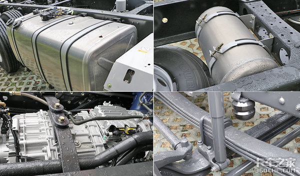 可能有人会说,气囊悬架比普通的板簧悬架沉,根本不能多装多少。对此乘龙H7这款实拍车也有考虑到了,它通过使用轻量化车架、铝合金油箱、铝合金储气筒、铝壳变速箱、前桥少片簧(三片)、轻量化钢圈、铝合金钢圈(可选)等轻量化设计,完全可以降低自重,达到多拉快跑的目的。