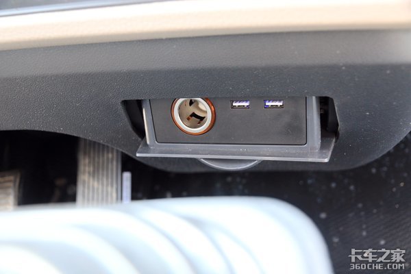 如果想增添行车过程中的乐趣,可以加装MP5进行影音娱乐。在电动空调下方,布置有两个USB充电口和点烟器,方便为手机等设备进行充电。夜间行车时,驾驶室内部比较黑暗,行车过程中也不方便打开车内照明灯,如果想给手机充电怎么办呢?USB充电口内部自带蓝色光源,使用上更方便。
