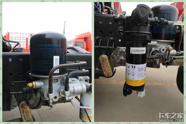 干燥器位于车架外侧,配置高密封性的快接插头,布置上比较合理,检修更换时拆卸上也比较方便快捷。部分车型配有原厂大品牌二合一燃油滤清器,可靠性更高,过滤效果更好。
