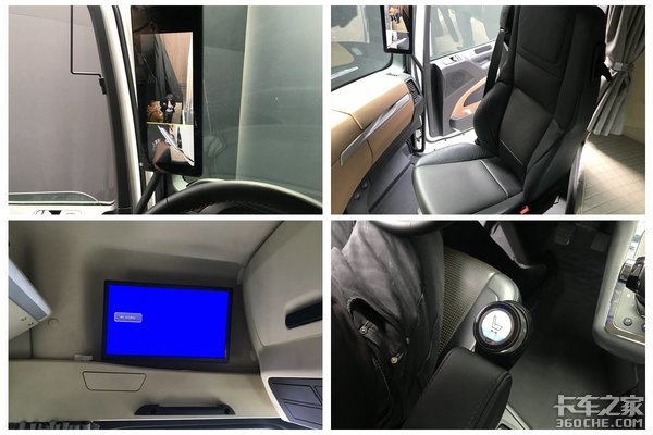 其驾驶室内部的配置也是非常不错,首先我们可以看到电子后视镜的成像效果非常不错,非常清晰。这款车的座椅也非常的高大上,包裹性非常不错,并且可以实现360的旋转,在驾乘座椅的上方还有一块电视显示屏,搭配上这个座椅,太香了。
