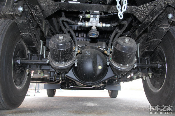 同时为了进一步降低车身重量,帅铃Q6采用了铝合金的储气筒,并且搭载150L的铝合金油箱,不仅降低了底盘重量,同时相较于它的使用工况来说,这样的容积也算充裕了。