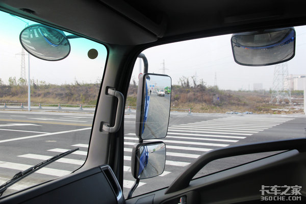 后视镜设计依然是分体式外摆镜+两块补盲镜的组合设计,外摆镜的外摆幅度相对较宽,能够更好地匹配宽货厢,带来更好的视野,提升驾驶安全性。并且后视镜配备有电加热功能,雨天驾驶更加安全。