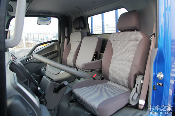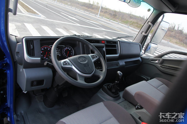 内饰设计以深灰色为主,采用了更多的直线条,功能区域划分更加合理,同时观感更佳。由于采用的是宽体驾驶室,中控台看上去更加的宽大,同时驾驶室内部空间很充裕,对于驾乘的舒适感有所保证。