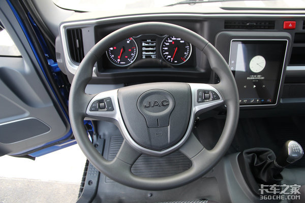 采用江淮经典造型的四幅式多功能方向盘,左边是定速巡航的控制按钮,右边是蓝牙电话、多媒体的控制按钮,功能相当全面。同时值得一提的是该车型配备有电子转向助力,驾驶更加从容。