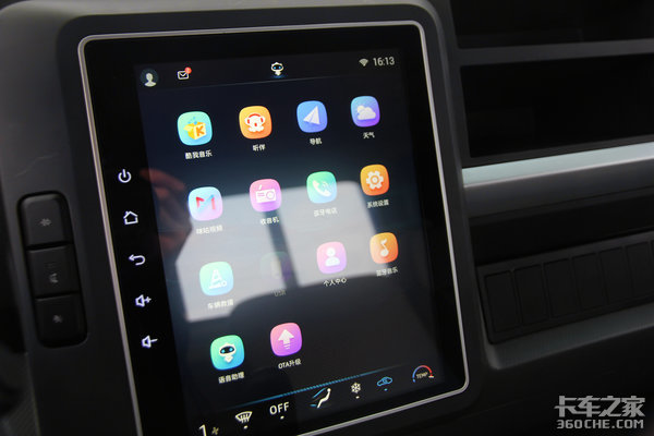 10.4英寸的中控大屏并没有采用传统的横置设计,而是采用了竖置设计,这样的好处是整体的操作体验更加偏向于乘用车。除了常见的导航、多媒体、蓝牙电话、360影像等功能,还带有手机互联、一键救援、车联网系统等,集娱乐性和实用功能性于一身。