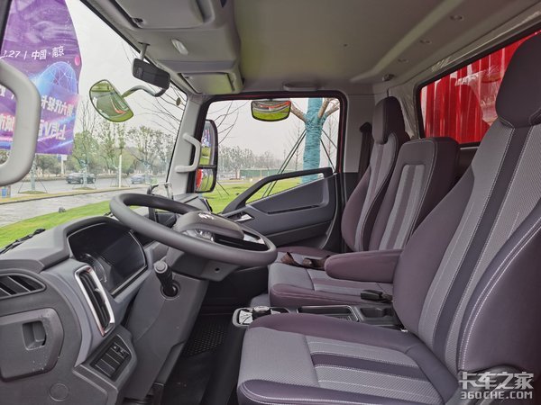 这款快运H500采用跃进第六代全新驾驶室,直立式设计可以给到驾驶员更开阔的视野。整个驾驶室的内饰采用深灰+浅灰的配色,抗污性非常强。