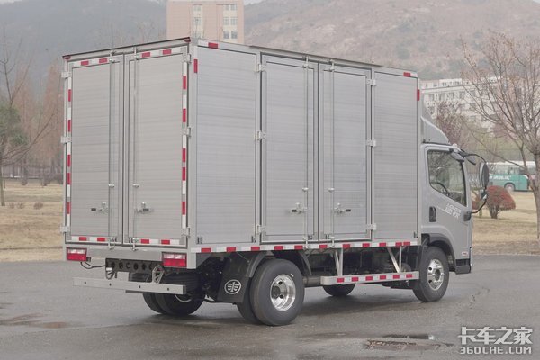 注意看,这款车采用的还是铝合金厢体,关键位置也用铝合金加强筋加固,整体除了强度更高,耐腐蚀性更强之外,也可以让整车实现更低的重量。