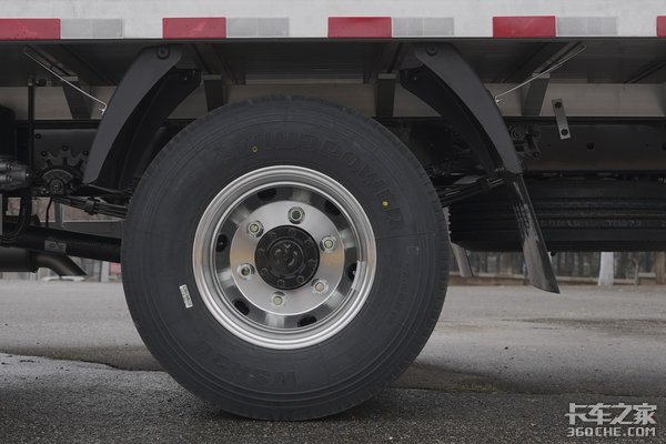 轮胎方面,采用知名品牌风神风力轮胎,六条轮胎均为此品牌,尺寸规格为7.50R16。并且,相信大家都发现了,这款车全车车轮均为铝合金材质,可以进一步实现重量的降低。