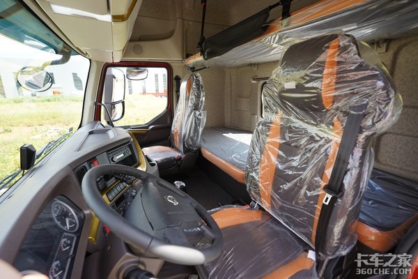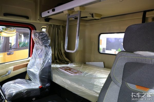 实拍车的采用高顶双卧驾驶室,标配有多功能方向盘、中控台彩色大屏、电动车窗、遥控钥匙、电子中控锁等配置。