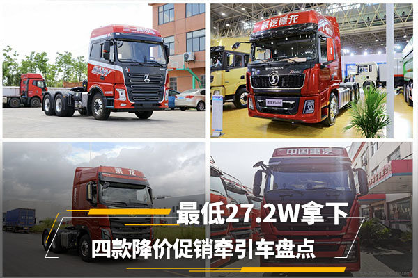 由于马上临近年关,各地商用车经销商为了拼业绩,纷纷对自家产品进行降价促销操作。本次卡车之家为卡友们带来的是正处于降价促销阶段的四款牵引车,分别是三一集团 王道 462马力 6X4牵引车,中国重汽 HOWO TH7重卡 490马力 6X4牵引车,陕汽重卡 德龙X5000 轻量化版 550马力 6X4牵引车以及东风柳汽 乘龙H7重卡 550马力 6X4牵引车,下面我们来看一下这四款车的具体配置怎么样。