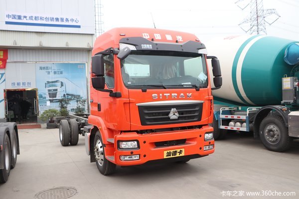 驾驶室为半高顶的设计,中国重汽四个大字印刻在车顶,展示了自己的身份,同时驾驶室为四气囊悬挂,提升了行驶在路况较差区域的驾驶舱舒适性。