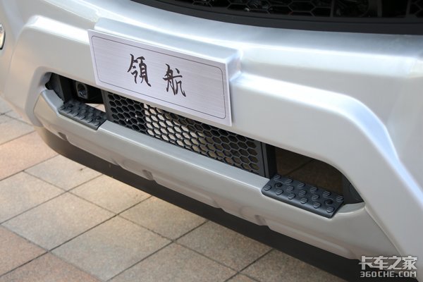 保险杠采用一体式设计,遇到碰伤或损坏的情况时只能整体维修或更换,维修成本上来说不如分体式设计能更省钱。保险杠上方设计有经过防滑处理的踏板,配合挡风玻璃前的两个把手,驾驶员踩着踏板清洗玻璃和前脸等部位时会非常方便。