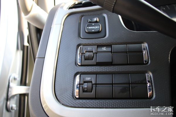 雨雾天气下行车时,后视镜极容易蒙上一层水雾,除了会导致驾驶员视线受阻外,安全隐患也会陡然增多。这款车除了在转向柱左侧布置有大灯高度调节、节油开关等基本的配置外,还布置了后视镜电动调节及电加热开关,帮助驾驶员及时清除镜面水汽,保障行车安全。