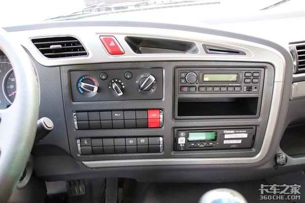 中控区域的布置十分规整,主要分布有手动空调、DPF再生开关、收音机、行车记录仪等,还设计有几个小的储物槽和卡槽等。中控台没有看到自动空调、中控大屏等的加入,整体配置表现中规中矩。