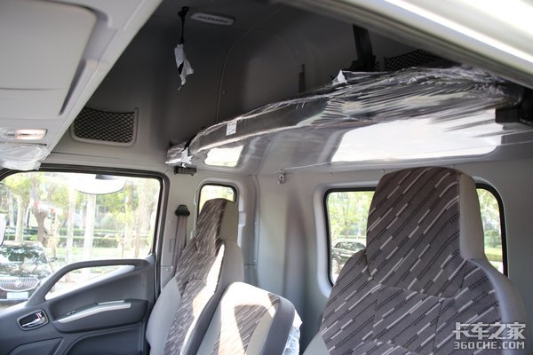快递用户在选购新车时,对驾驶室的活动空间和舒适性等方面往往要求较高。实拍这款时代领航采用高顶双卧驾驶室,车内地板到车顶的高度达到两米,驾驶员在车内可以伸展自如。驾驶室并排设计有3个座椅,中间的座椅翻折下来可以充当一个小桌板,驾驶员在手写文件或做其他工作时这个小桌板就能派上用场。