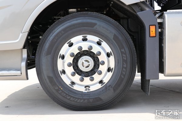 整车装配规格为12R22.5的三角牌轮胎,全车采用铝合金轮圈,进一步减轻整车重量。很多司机行车时最怕发生轮胎爆胎等意外情况,这款车配备有胎压监测系统,可对轮胎气压、温度等进行实时自动监测,避免因轮胎故障引发的交通事故。