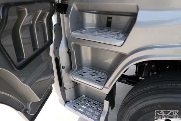 驾驶室配备有三级蹬车踏板,踏板逐级向内缩进,驾驶员上车时会更加稳当省力。踏板采用镂空处理并经过防滑处理,可以减少驾驶员上车时将泥土带入车内或脚底打滑的情况。