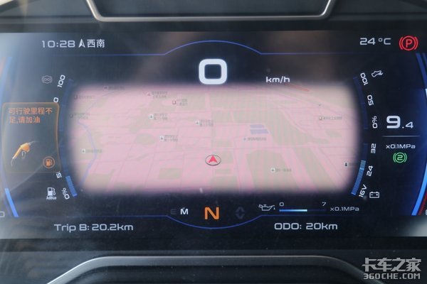 仪表盘区域配置有智能化程度非常之高的12.3英寸全液晶仪表,除了可显示发动机转速、车速、里程、油耗、油量、刹车气压、胎压等关键信息和各种警示灯外,还支持导航等功能,科技感和档次感十足。