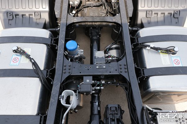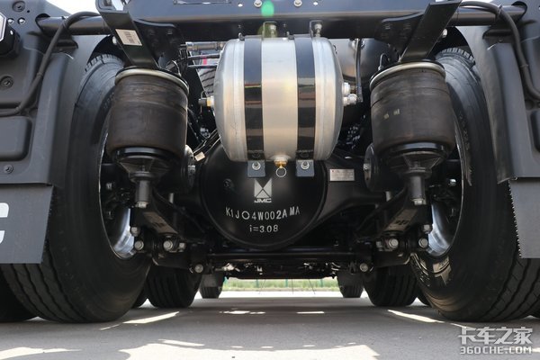 车桥方面,实拍这款车后桥速比为3.08。在高端运输领域,驾驶员运输的货物大多是具有高附加值的货物,运输过程中必须力求减少货损。这款车采用前2片簧后气囊悬架的设计,行车过程中能有效降低货损,减少震动对底盘零部件造成的损伤,同时可以快速调节后桥高度,方便甩挂运输。