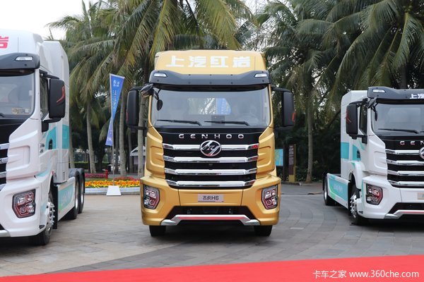 杰虎H6为高顶驾驶室,后面配置有原厂导流罩,完美符合空气动力学,降低行车时的风阻影响。正前方的“上汽红岩”四个汉字为白色打底,彰显了品牌影响力。