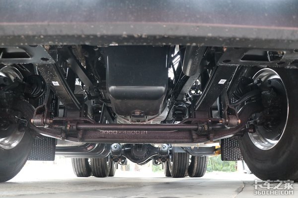 底盘方面,杰虎H6的车架高度为280×80×8mm,前后都是采用鼓式制动。5.5T前桥,后桥为435桥,速比为3.7。悬架采用前2后3的少片簧结构,而且该车的前后桥、转动轴都是免维护的,可以减少保养次数,节约用车成本。