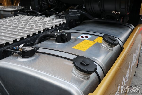 实拍车型的油箱为双油箱设计,容积为550L+150L,还配置了加热功能,在冬季,主油箱可以加0#柴油,可大大降低用车成本。