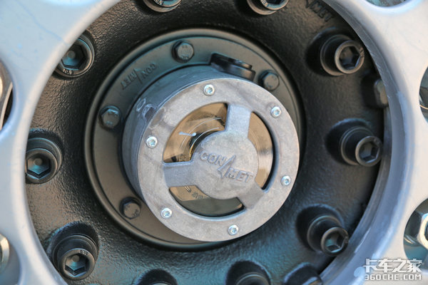 轮胎的型号为295/80R22.5,采用固特异品牌胎,同时转向轮配备了康迈50万公里免维护轮端,有需求的卡友可以选装全车康迈轮端。