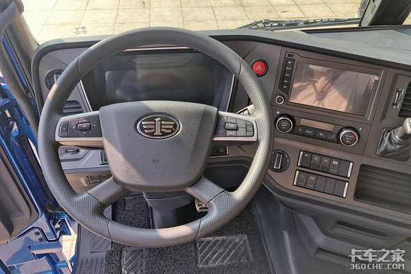 内饰方面也是差不多保持了一致,驾驶室采用高顶双卧平地板设计,内部的空间还是很大的。配置方面,像四幅式多功能方向盘、全液晶仪表盘、中控多媒体显示屏、自动空调、气动方向盘调节等应有尽有。