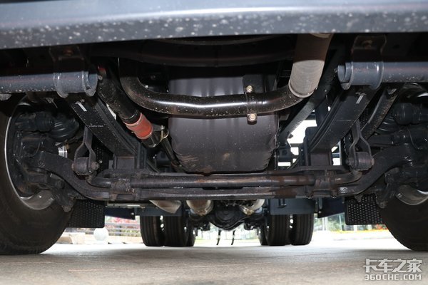 底盘方面,该车采用前2后3的少片簧设计。前后桥是采用的6.5T免维护前桥和435免维护后桥,速比为3.083。采用12R22.5规格的轮胎。