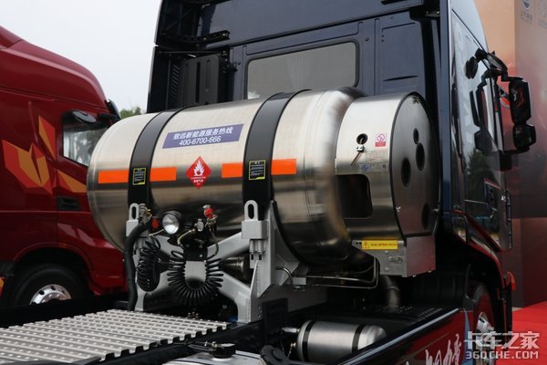 因为是LNG牵引车,标配1350L气瓶,续航能力还是十分有保障的。