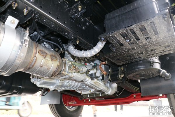底盘上的后处理系统,采用的是管式后处理规格,在达到国六排放的同时,还能充分利用车架空间。
