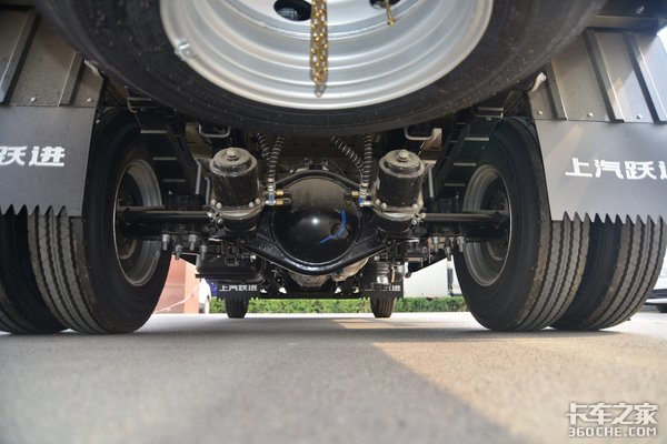 悬架采用前3后3+2的片簧设计,使用4T级的后桥,速比是5.125,从这里上不难看出,这种配置比较适合于跑国道或者山路,动力性以及爬坡力度都比较好,油箱为120L的铝合金油箱,可以使车辆有一个良好的续航能力。